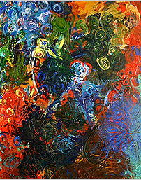 Seems to me the question is this: Line, color, shape, form, composition, and the other aesthetic elements that come into play in putting paint on canvas…can beauty only be made by rational, educated processes or can they simply spill out on the page not in childish randomness, but in childish play led by a sort of uneducated intuition that bypasses the rational process all together, and that some people (who knows why, other that God gifts us all differently) throw paint on canvas in abstraction, and step back and decide whether they like it, or whether they don’t. And somehow, through this process, something visually coherent arises that touches us through inexplicable means, and the lack of rationality about it is no reason not to celebrate the art’s arrival.